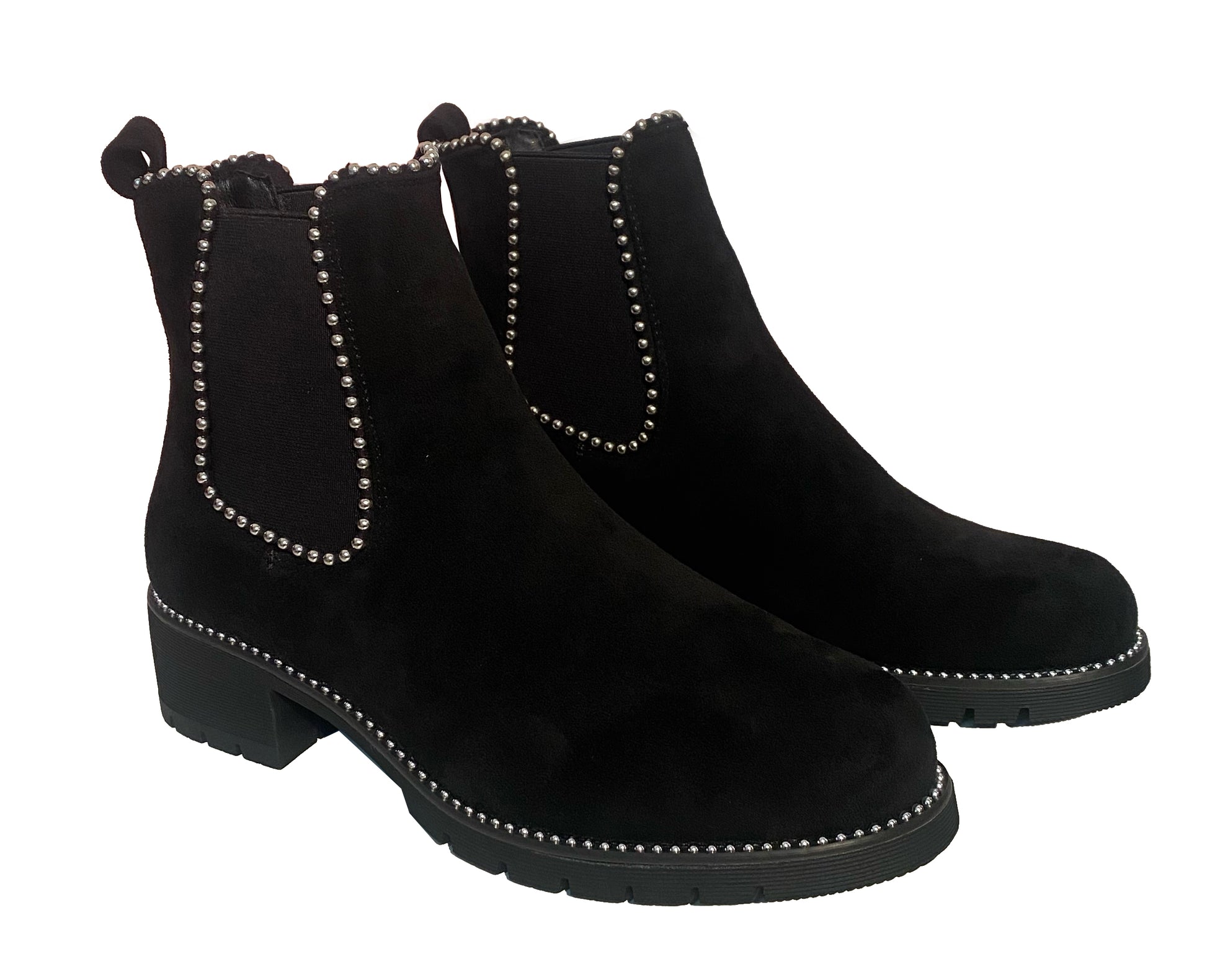 Becca Womens Ankle Boots make winter fashion stylish and comfortable. Made with faux suede and featuring a twin gusset, these boots keep your feet warm and dry while ensuring you stand out with their stylish studded detailing.