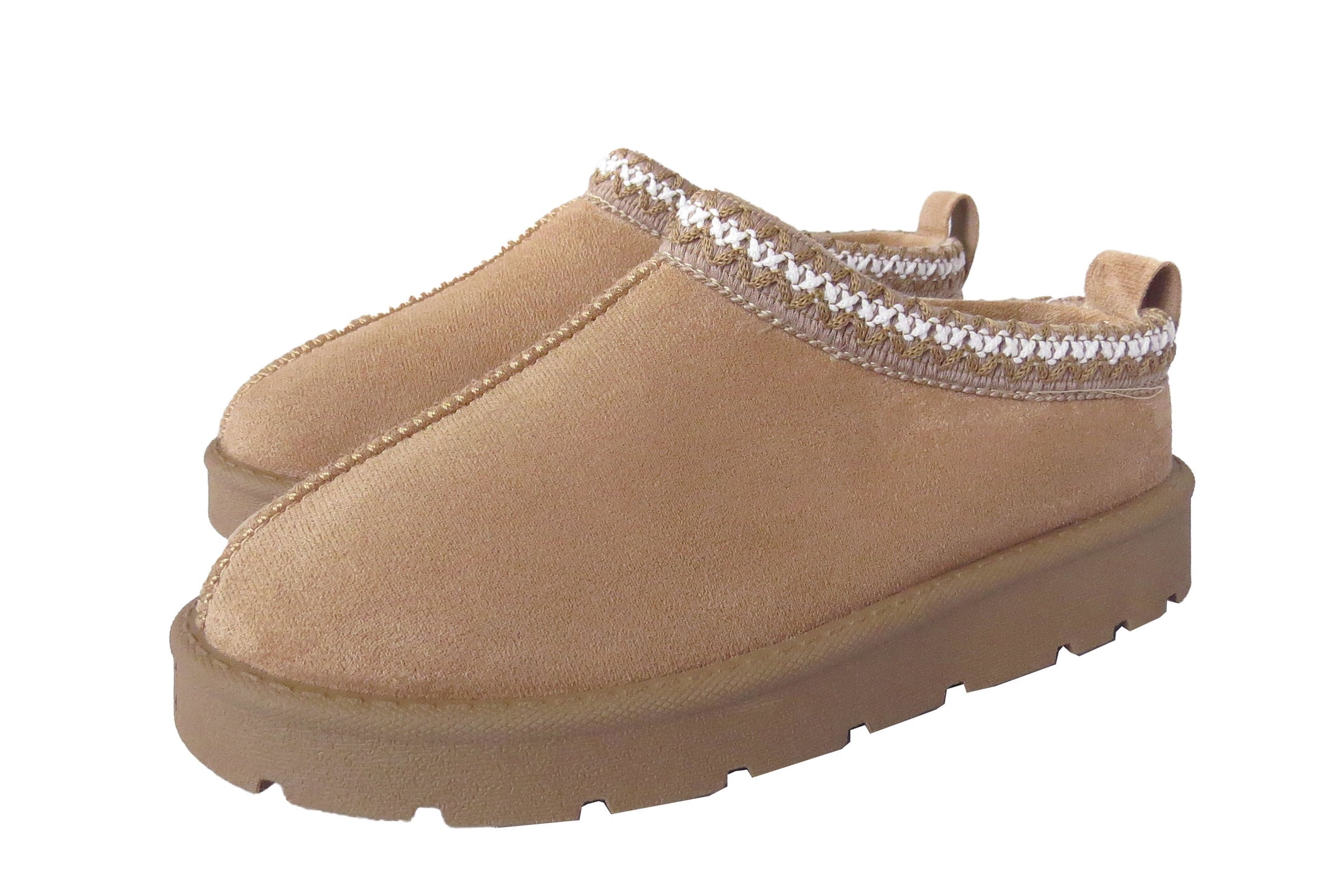 Embrace the ultimate comfort with our Women's Cozy Suede Moccasin Slippers, available in sizes 3-8 UK. These stylish slippers feature a luxurious faux suede exterior and a plush fleece lining that keeps your feet warm and snug. The intricate braided detail adds a touch of sophistication, while the durable rubber sole ensures lasting wear and slip-resistance. Perfect for lounging at home or popping out for quick errands, these slippers are an essential addition to your footwear collection.