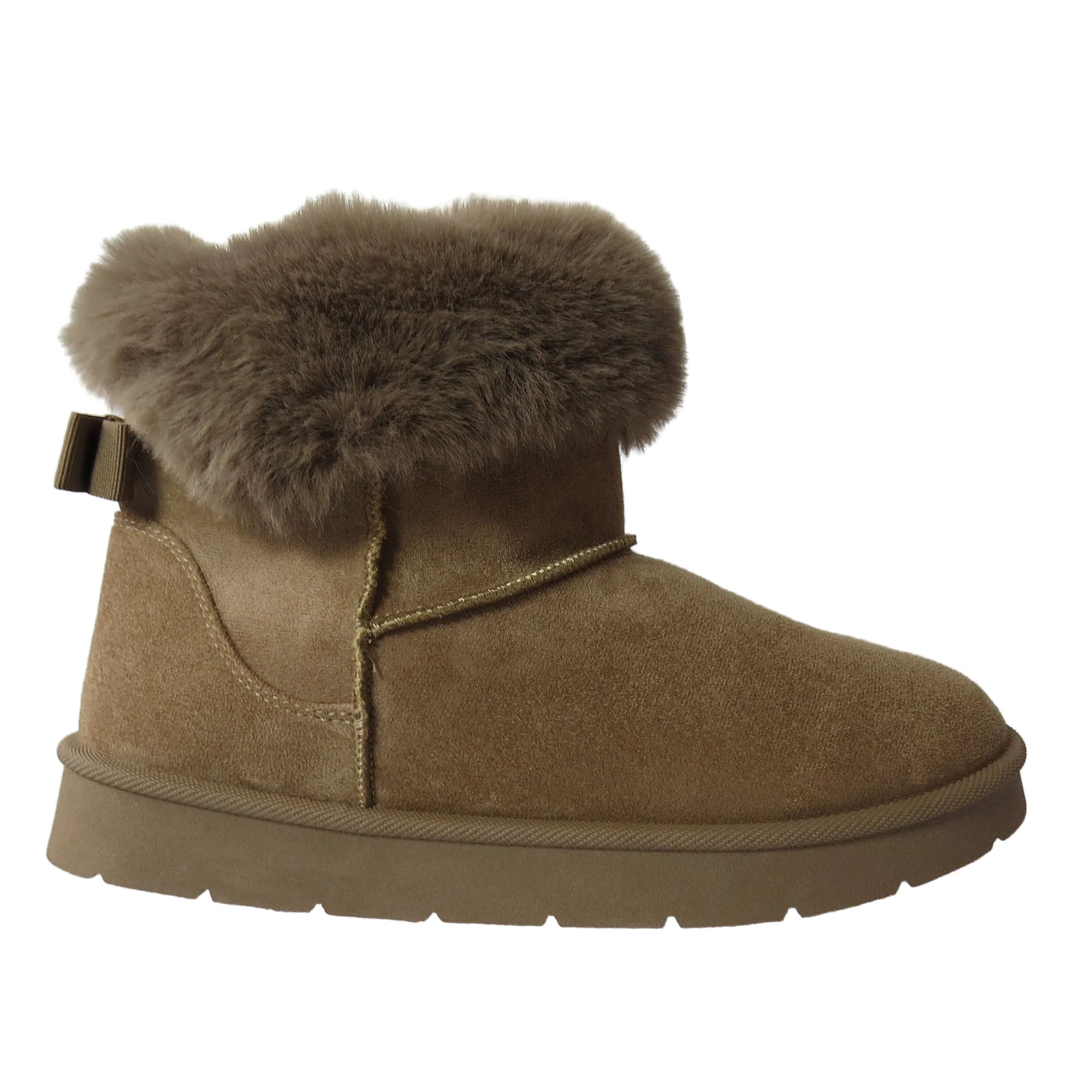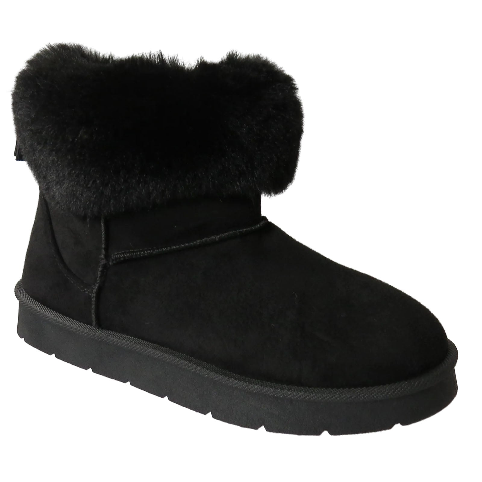 Maria Ladies’ Faux Suede Ankle Boots with Faux Fur Trim Collar & Cozy Fur Lining